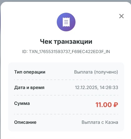 Комментарий: Выплата пользователю с проекта MyBizz