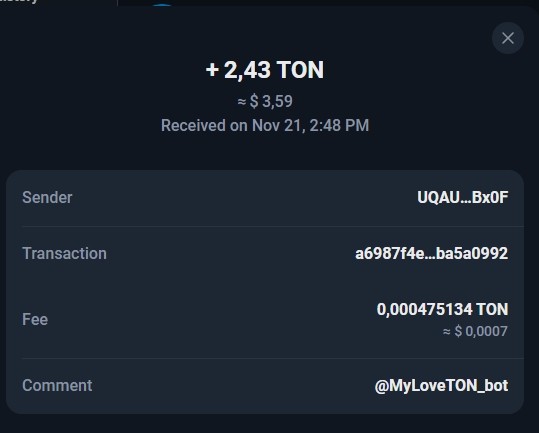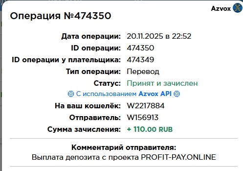 Комментарий: Выплата пользователю с проекта MyBizz